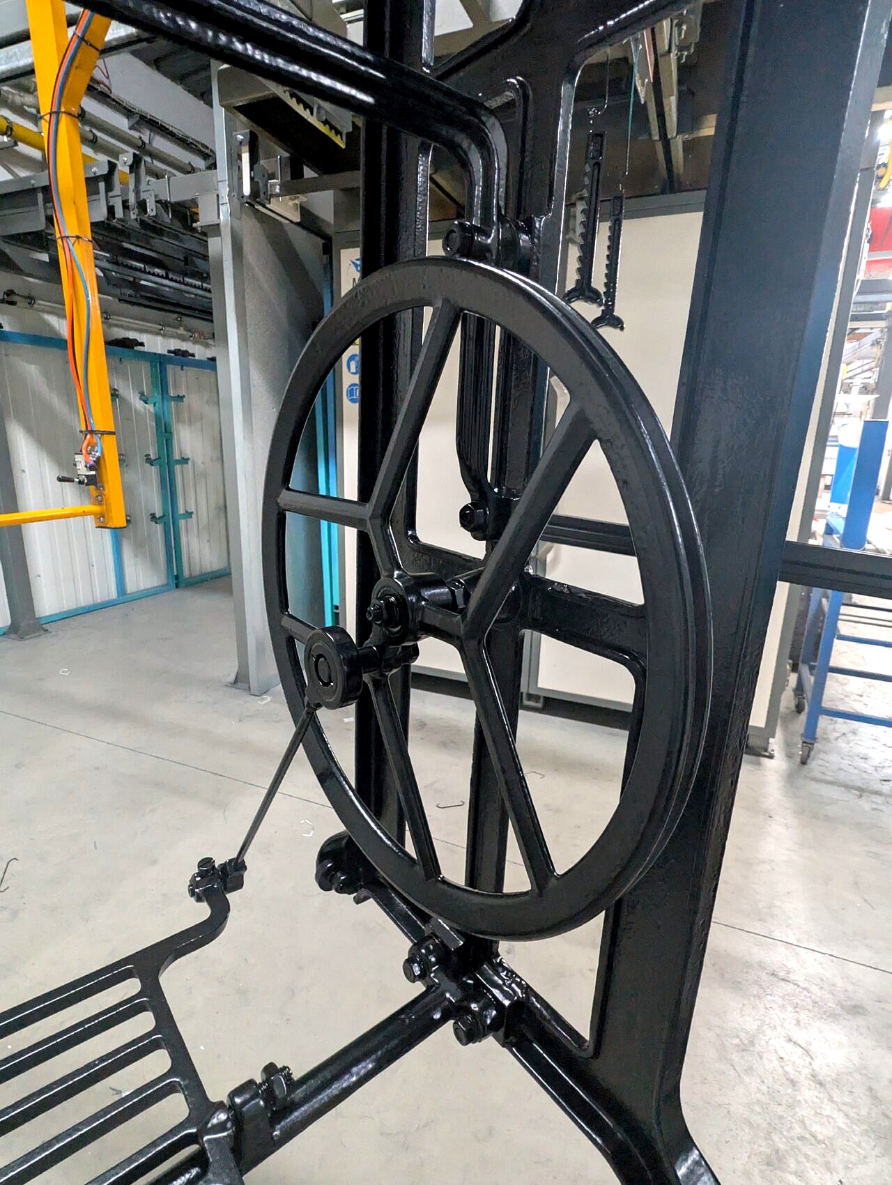 Kolor RAL 9005 (Jet Black) doskonale podkreśla detale zabytkowej maszyny do szycia i nadaje całości ponadczasowej elegancji. Wybrana struktura powłoki pozwoliła zamaskować drobne niedoskonałości materiału i zapewniła wysoką odporność antykorozyjną.