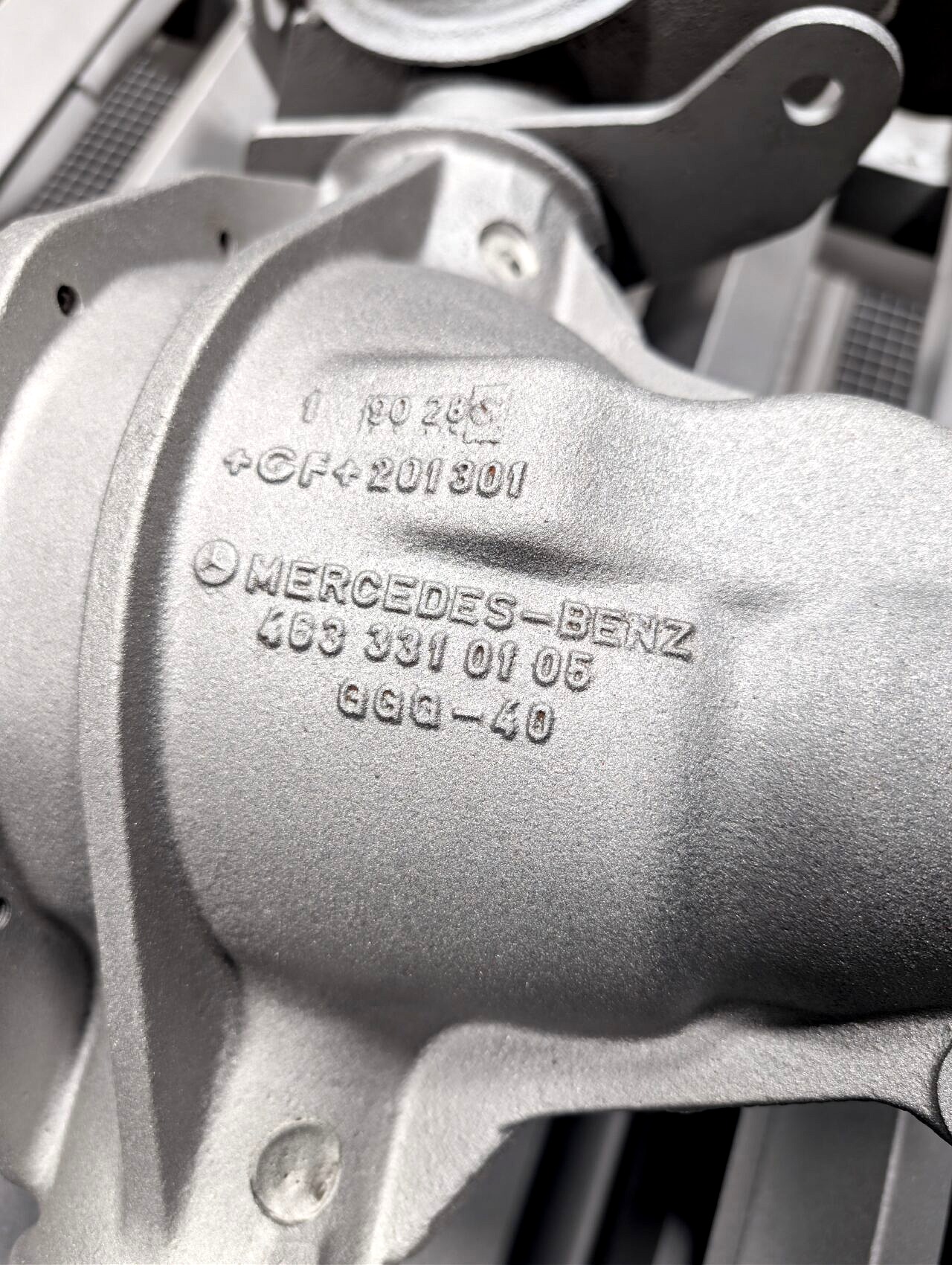 W ramach realizacji wykonano śrutowanie mostów napędowych i osi przed dalszą regeneracją. Proces ten znajduje szerokie zastosowanie przy regeneracji komponentów stosowanych w pojazdach użytkowych, dostawczych i ciężarowych, w tym w konstrukcjach spotykanych w pojazdach marki Mercedes-Benz. Ze względu na gabaryty oraz stopień zużycia tych elementów, obróbka strumieniowo-ścierna jest najbardziej efektywną metodą ich oczyszczenia.